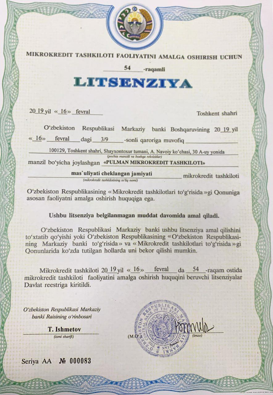 Pulman - финансовый партнер предпринимателей Узбекистана